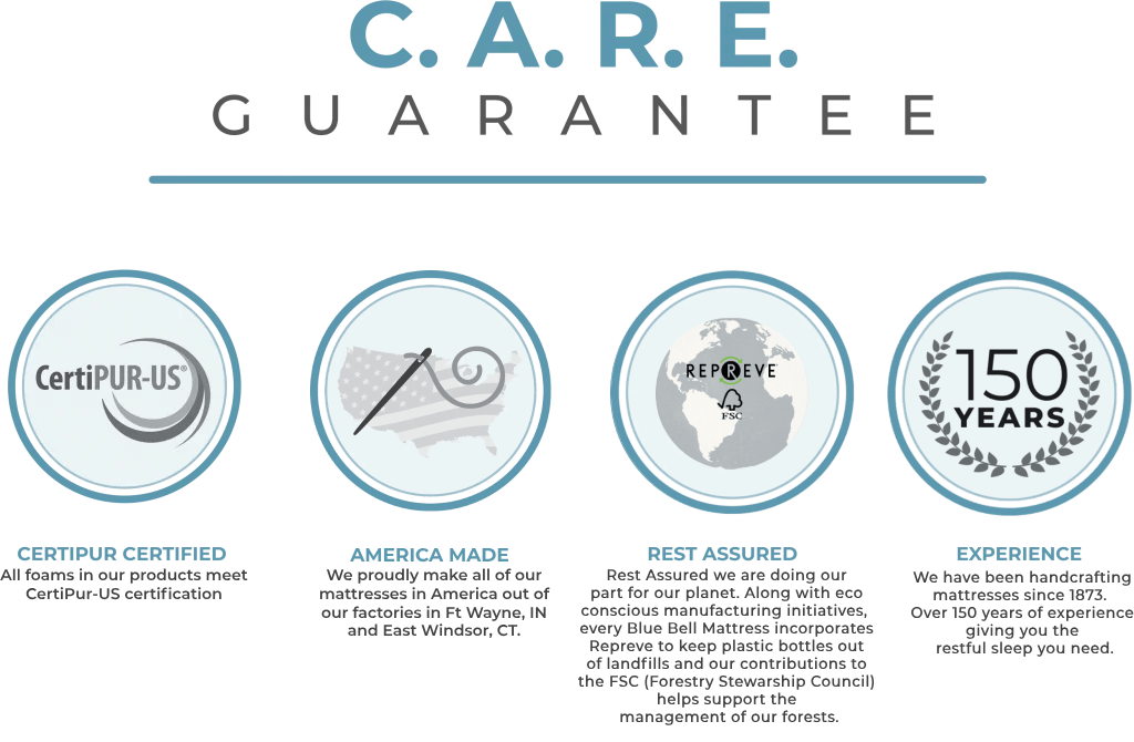 Our diverse product line starts with the care of our family to yours. We know you expect the best which is why we only stand for the best. We are confident we can take care of your sleeping needs and invite you to explore our brands to see which one is right for you. We cannot wait for you to join the Blue Bell Mattress family.
